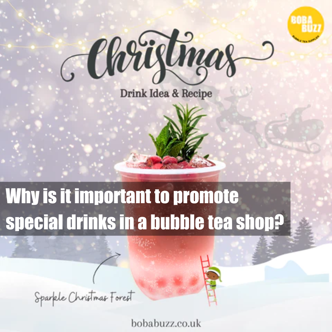 Promoting special drinks in a bubble tea shop is important because it helps differentiate the business, engages customers, increases profitability, generates social media buzz, allows for seasonal and limited-time offers, and provides menu variety. It enhances brand image, drives sales, and fosters customer loyalty.